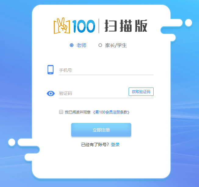 目前易100阅卷系统仅支持手机号码验证注册,注册需要做如下操作: