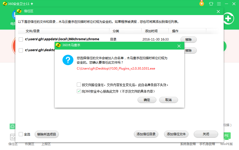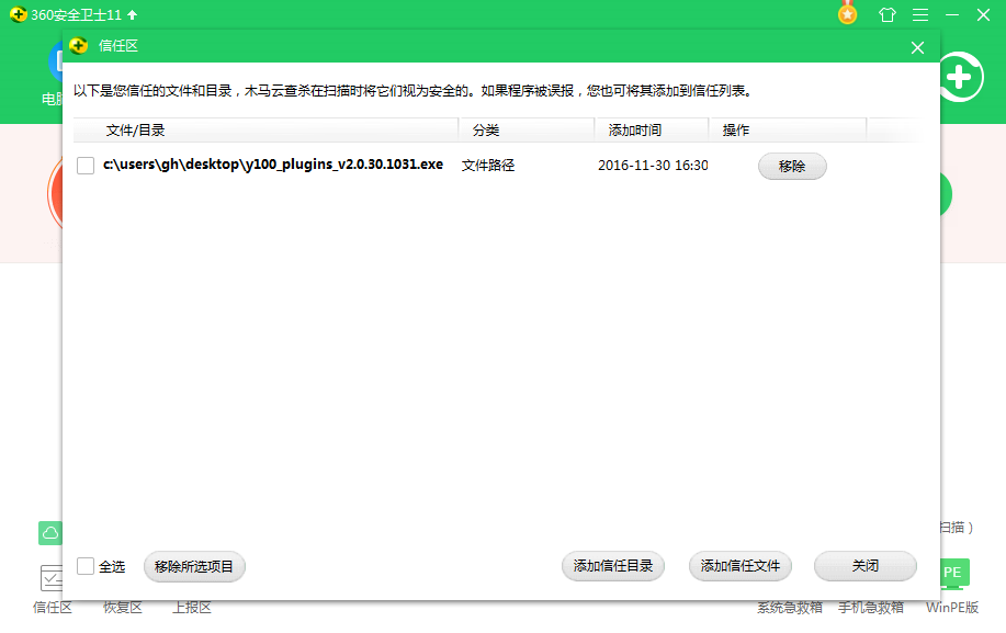 5、这样就完成了360安全卫士添加信任文件的过程。然后点击Y100阅卷助手文件安装就可以啦!