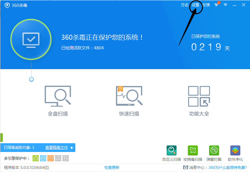 1、找到360杀毒图标,双击打开360杀毒,点击右上角的“设置”按钮