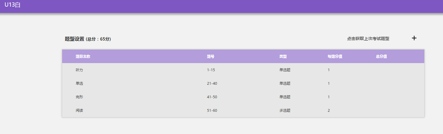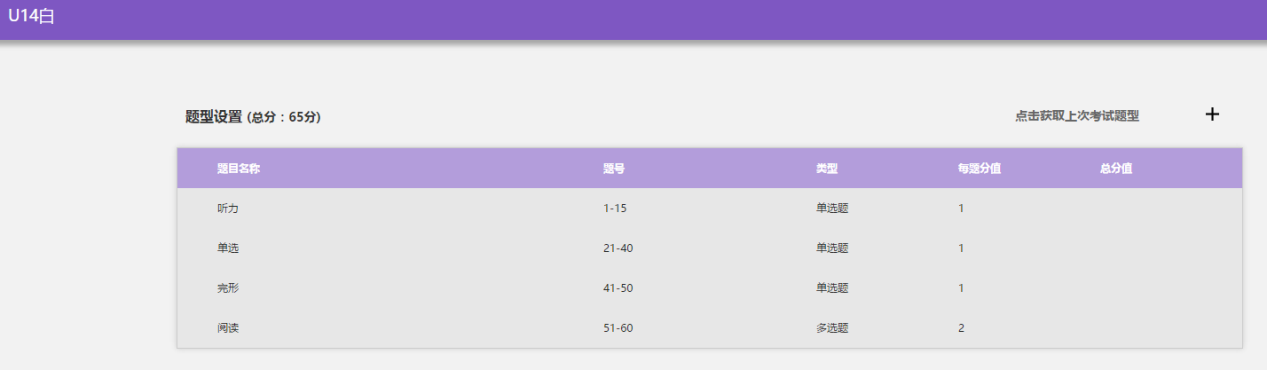 在小易的系统中,有一个按键,它能够帮助老师快速的简化工作,减少阅卷前的各种设置,那就是——点击获取上次考试题型。它能快速的读取上一次考试的所有题型、题目、标准分值的设置,免除多次重复设置的时间,而赖老师就是运用这个功能减少了相当多的设置工作量,做到收作业即可改作业。