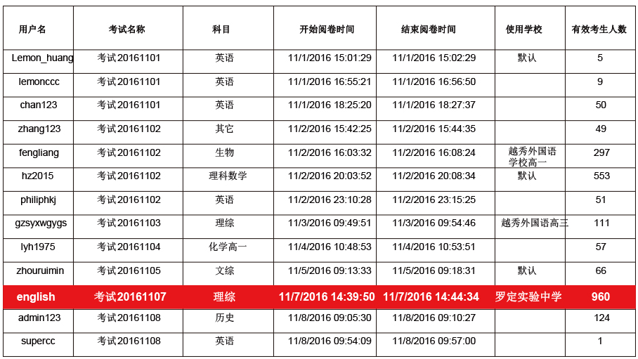 创造0.2秒1张卷子的最快纪录去年10月份,易100官网首次举办阅卷速度排位赛活动,罗定实验中学的陈老师5分钟阅卷960人,以平均0.2秒1张卷子的速度,获得排位赛的冠军,赢得阅卷王称号。